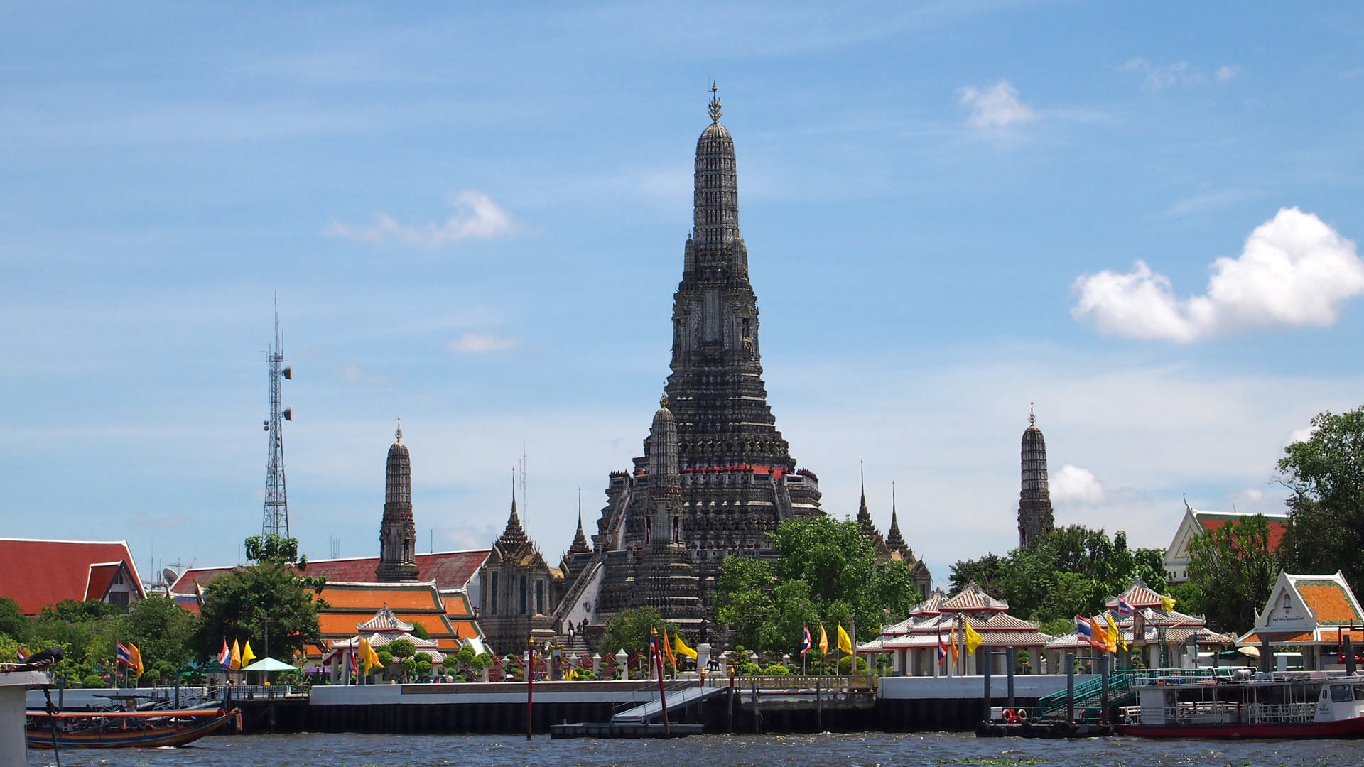 From the nearby pier, we take the public ferry and cross the mighty Chaopraya River to Bangkok’s best-known landmark, the enchanting Wat Arun (Temple of Dawn).