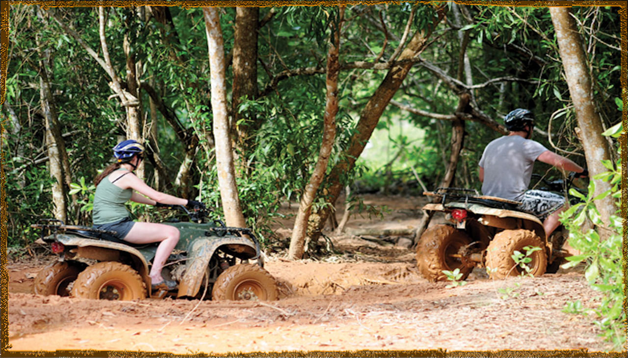 It does not matter if you are new to riding or an experienced 'adrenaline junkie', you will have a great time on this ATV adventure taking you on a journey over all sorts of exciting terrain in this 350 acre (142-ha) off road area. This is a 2 hour fully guided, adrenaline-filled, exhilarating ride through plantations, jungles, a beach and more.