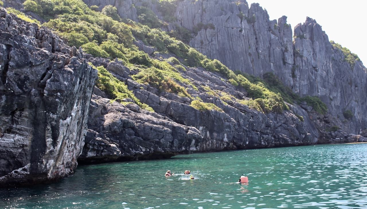 The morning kayaking is along the coast of Mae Koh were you navigate beneath huge rocks overhangs and view some of the most magnificent scenery the gulf has to offer.