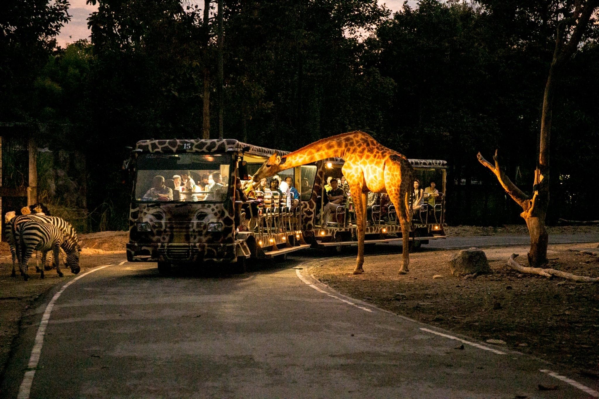 The Savanna Safari, named after the African savanna, houses animals as giraffes, elephants, antelopes, zebras, rhinos and deer. The easiest way to get around the 2.4 kilometer trail is by open tram of the daytime safari or the night safari.
