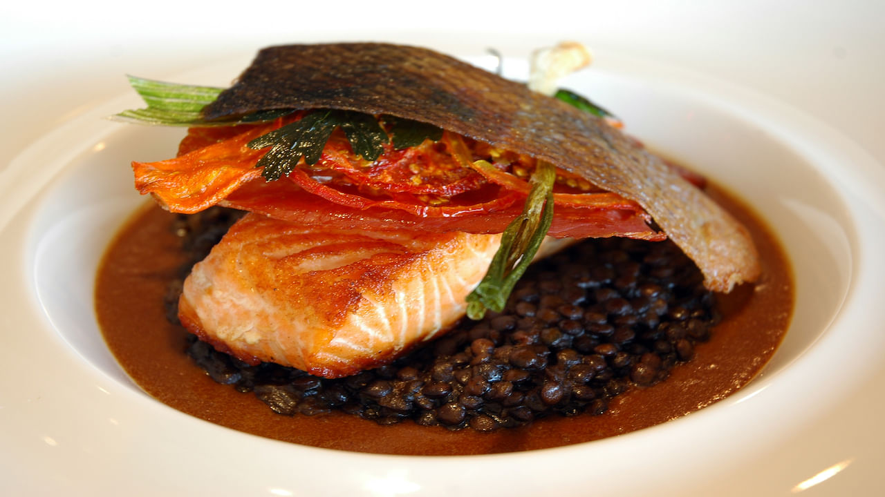fennel, Citrus Flavor and Bee Pollen, Duck Leg Confit on “Rocket” Salad