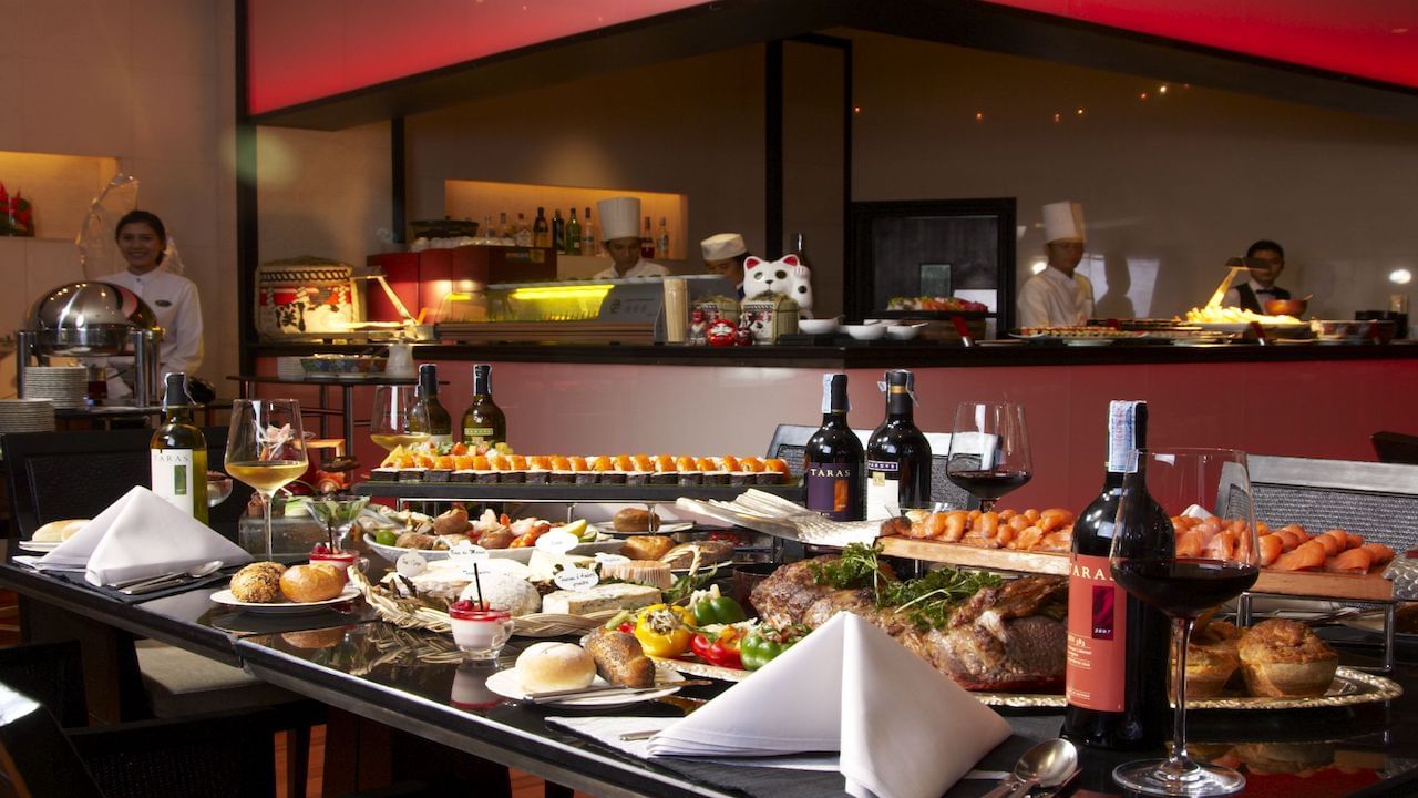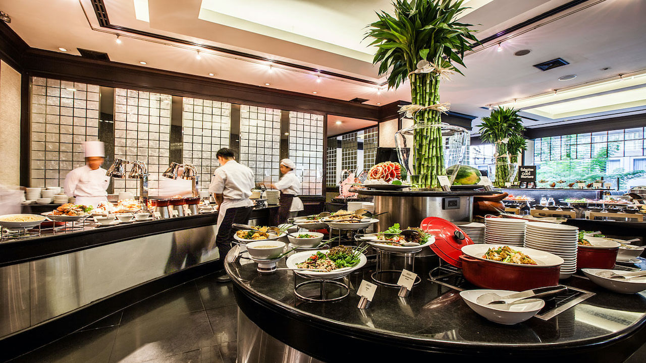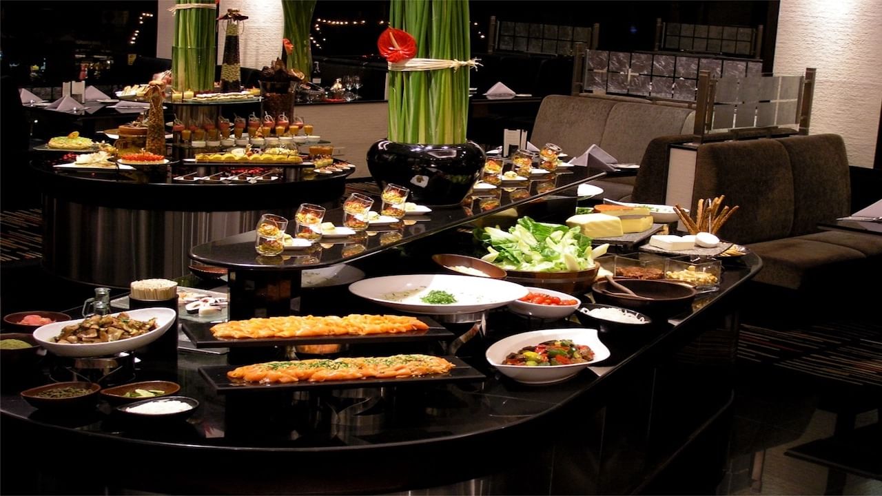 Features large selection of seafood, Japanese Sushi and Sashimi, Authentic Thai Buffet Fresh a-la minutes western cuisine, Carving station with roasted beef and lamb Home-made French pastries, Chocolate fountain and exotic Thai sweets