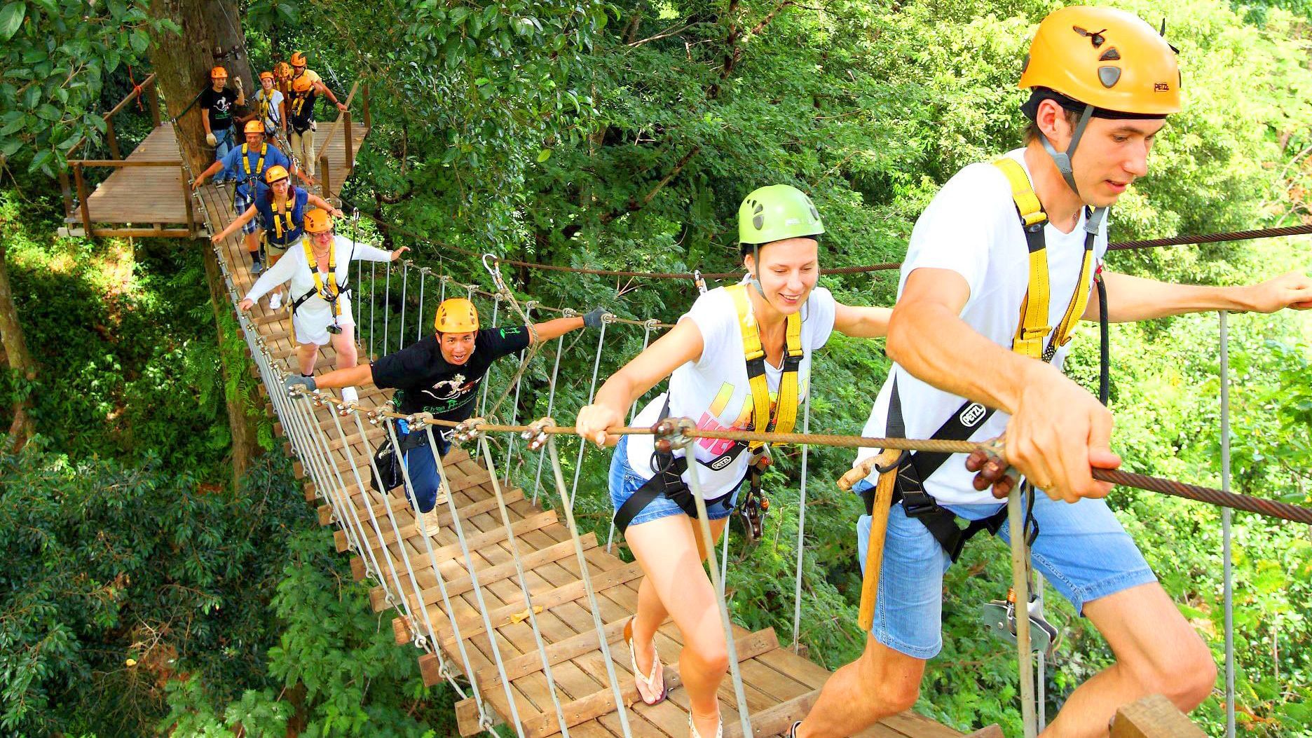 Once you're feeling comfortable and confident, begin a well-built course that features plenty of ziplines, platforms, sky bridges, and spiral stairways. With your harness securing you to the line, zoom through the treetops and enjoy the pulse-pounding feeling of soaring like a bird and you fly from platform to platform. A wilderness walk and the opportunity to try your hand at abseiling round out this exciting experience, which ends with a ride back to your hotel.