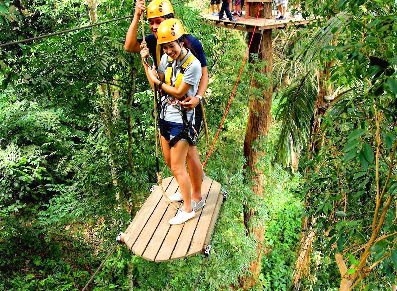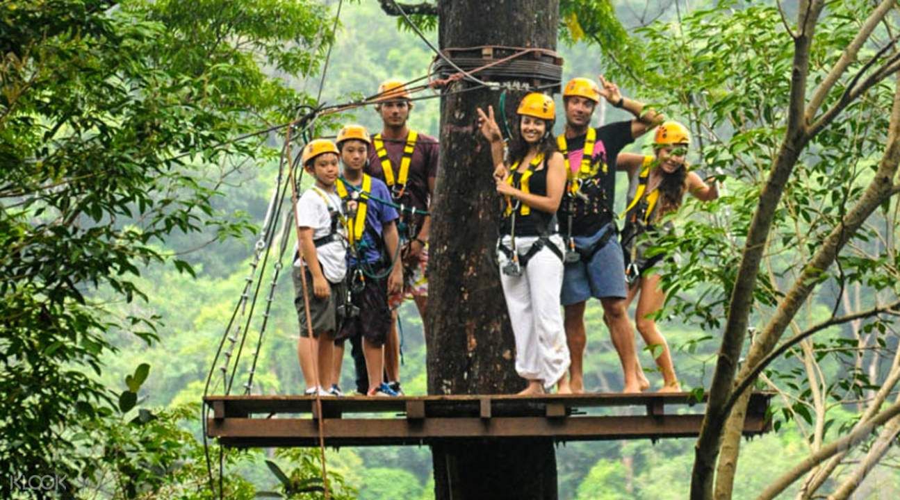 After pickup from your hotel, take a drive a drive to the zipline course and meet your friendly guide, who goes over a safety briefing that helps you prepare for your adventure. Nestled on a 262,467-square-foot (80,000-sq-m) plot of land covered with rubber trees, Flying Hanuman is the perfect place to observe the thriving green flora and diverse fauna that make the island unique.