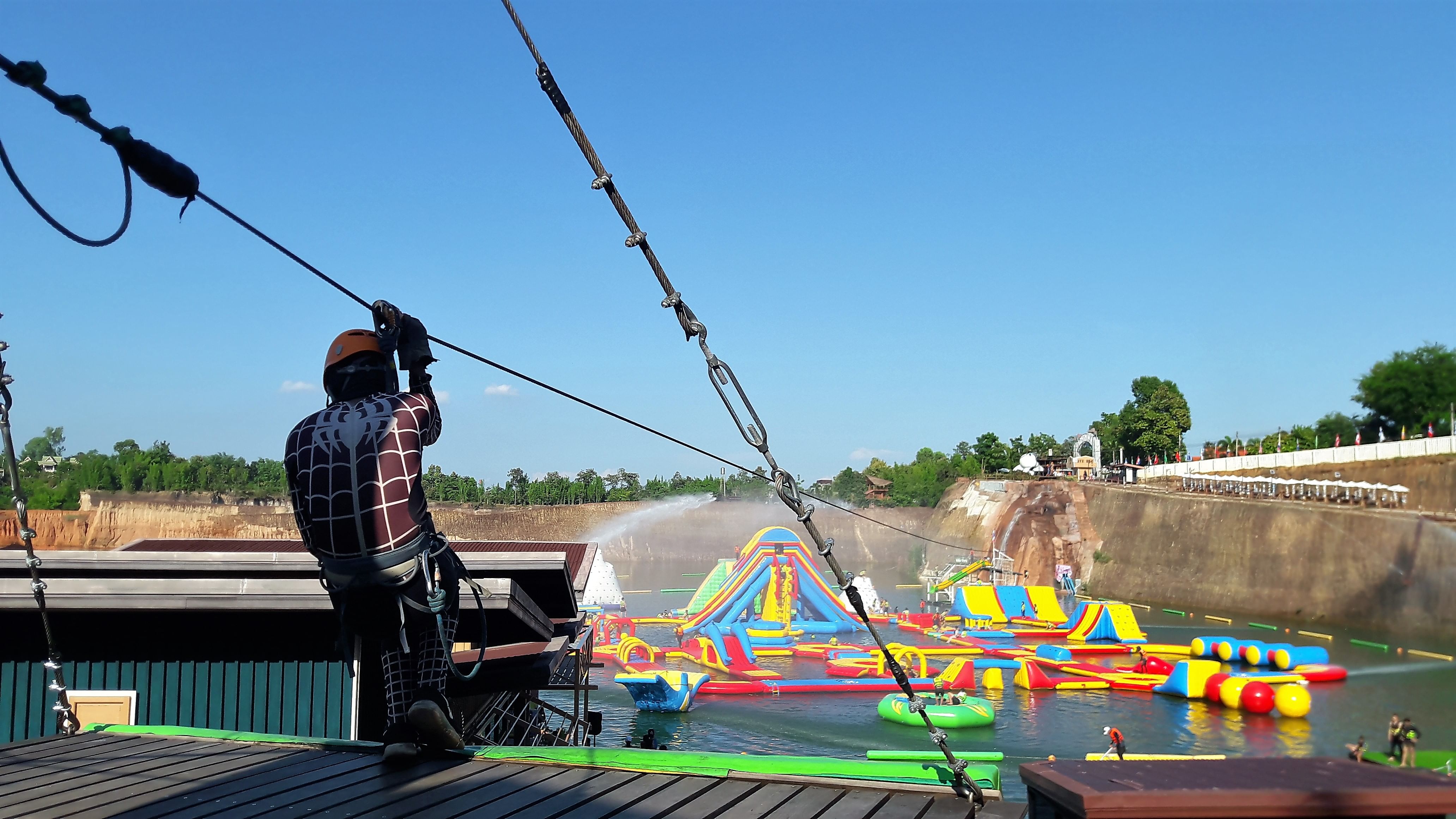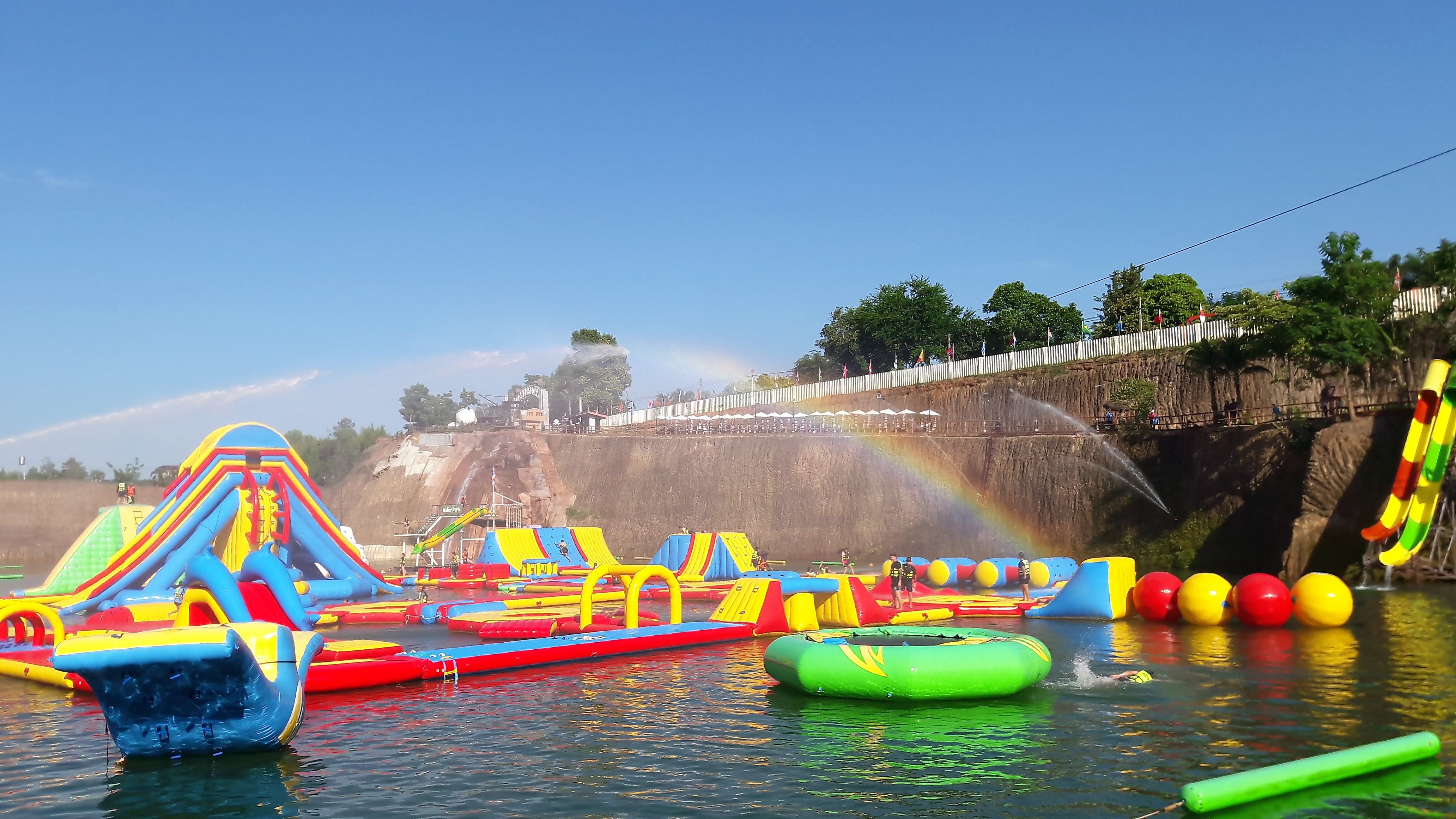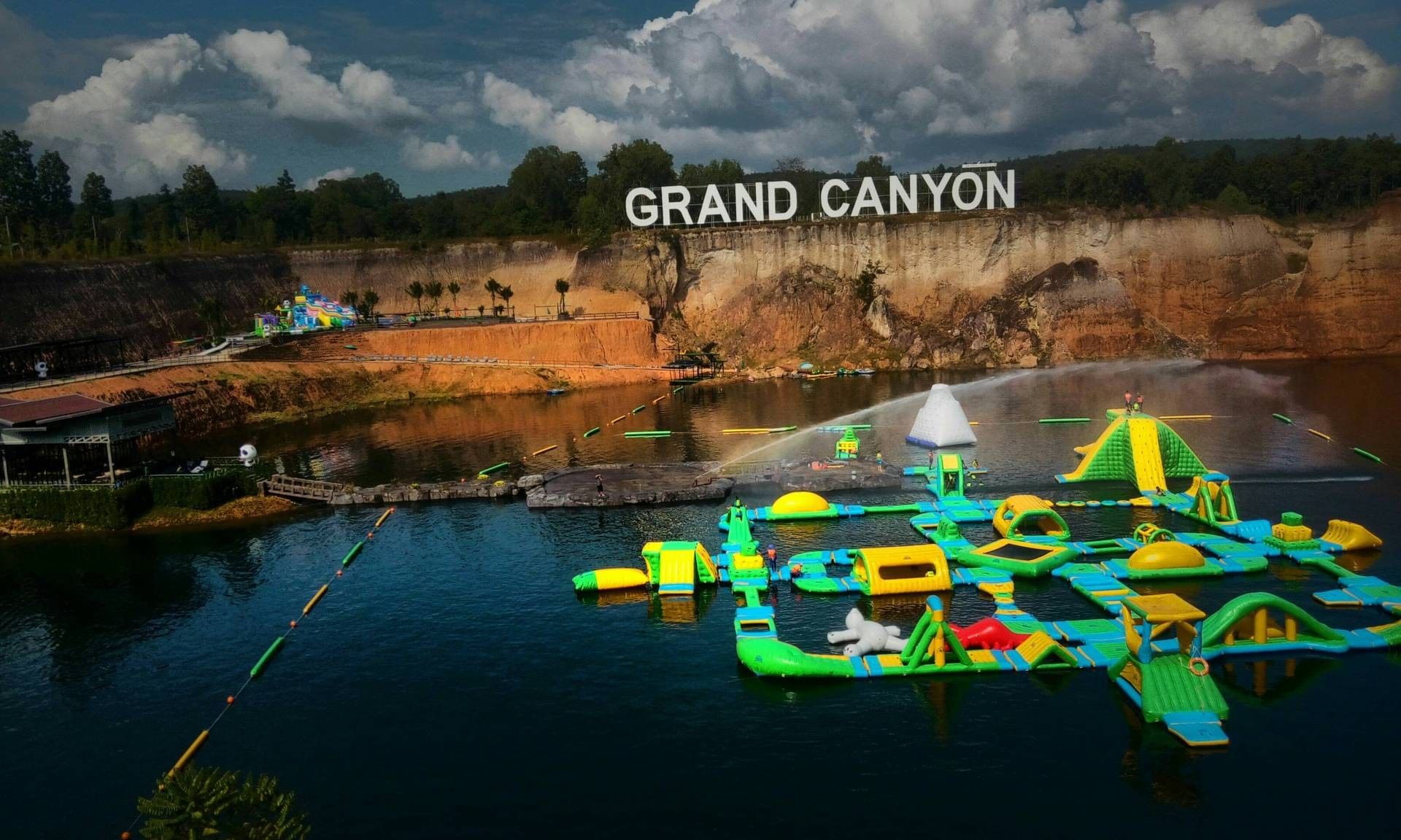 Welcome to the Grand Canyon Water Park in the north. This is no simple water park. The main attraction is the inflatable obstacle course where you climb, jump, bounce, tiptoe, pull and swim your way from one end to the other.