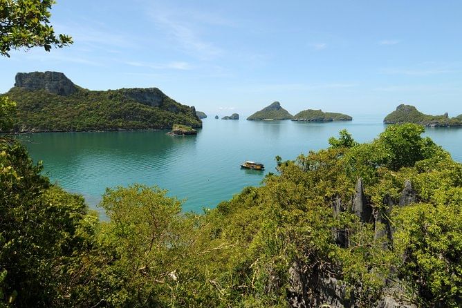 On this tour, a large 23 metre boat with comfortable seating and sundeck will take less than two hours to transport you to the limestone islands and pristine waters in the Angthong National Marine Park.