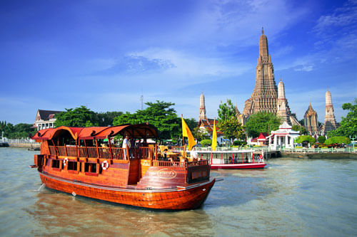 You are welcomed aboard one of Bangkok’s most luxurious river cruises by the crew. Once the vessel embarks, the dining festivities commence; a perfect blend of aromas and flavours are served in an intimate setting to satisfy the most discerning traveler. The set menu represents the very best of Thai cuisine, and the waitstaff are more than happy to explain the selection of dishes and consider any dietary requirements. A well-stocked wine list and drink menu complement your 2-hour dinner cruise. Continuing upstream along the Chao Phraya River, you'll pass magnificent landmarks beautifully lit up at night. See the imposing Wat Arun (Temple of Dawn), the Grand Palace, and Royal Barges National Museum, and glide past bridges and glittering temples as vivid snapshots of traditional Thai life unfold on the riverbanks.  On arrival at the pier, make use of the free shuttle or return directly to your hotel if you have booked the private transfer option.