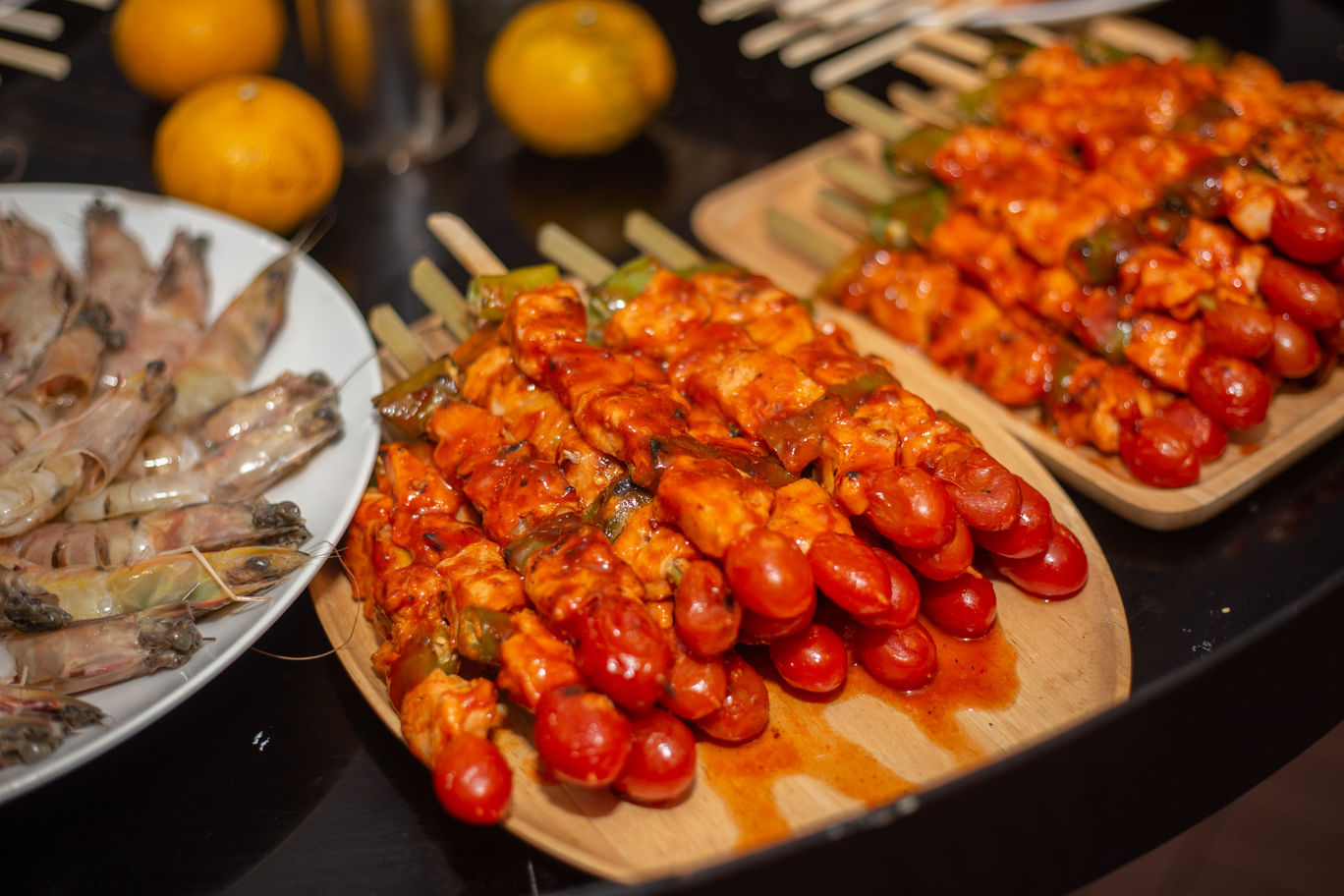 enjoy snacks, refreshments and then their choice of a delicious BBQ, Thai and Indian buffet