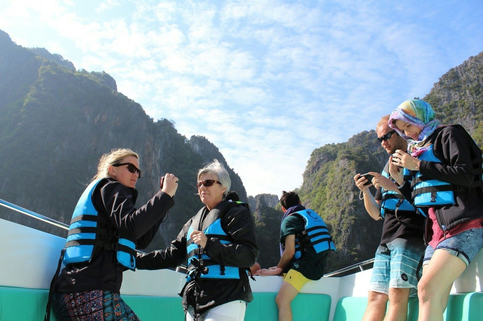 Transfer from your hotel around 6.00am to Royal Phuket Marina to enjoy a Continental Breakfast before leaving at 7.30am for the fun speedboat ride out to your first sightseeing opportunity of the day, Viking Cave and Maya Bay. Here you'll see the beautiful sunrise and enjoy some light breakfast treats. (Maya Bay, was the filming location for the movie ‘The Beach’, starring Leonardo DiCaprio. With a lagoon of clear emerald-green waters surrounded by sheer limestone cliffs, it is known as one of the most gorgeous natural swimming pools in the world. Being on many tourists' 'Must-See' lists, it can get busy here making the timing of this tour ideal. You will arrive before the crowds!