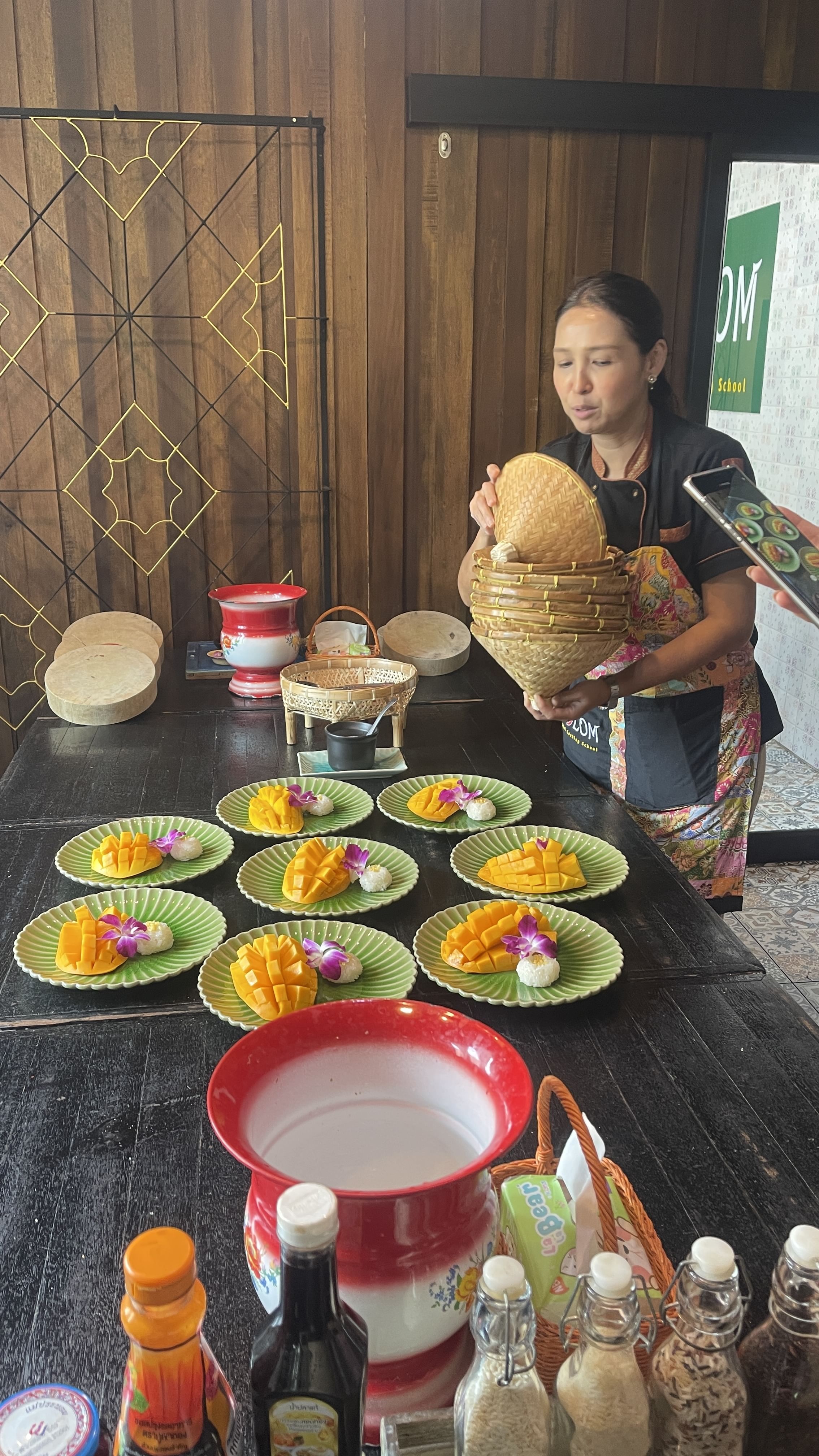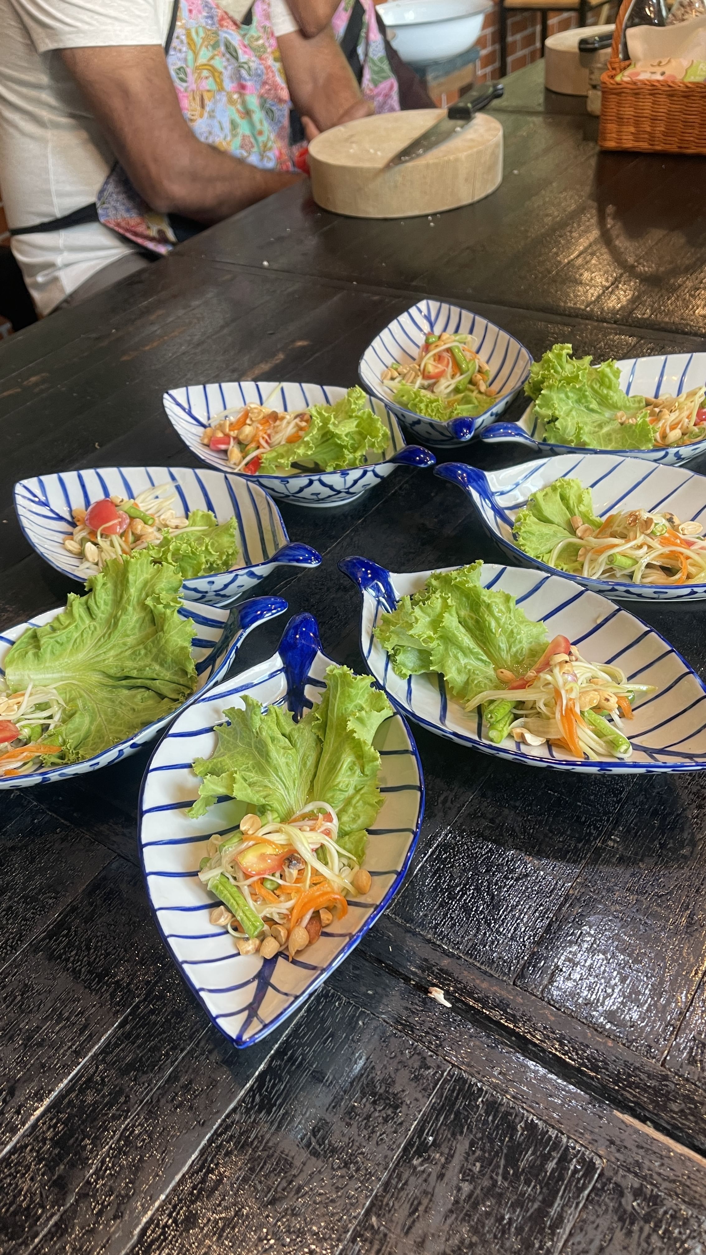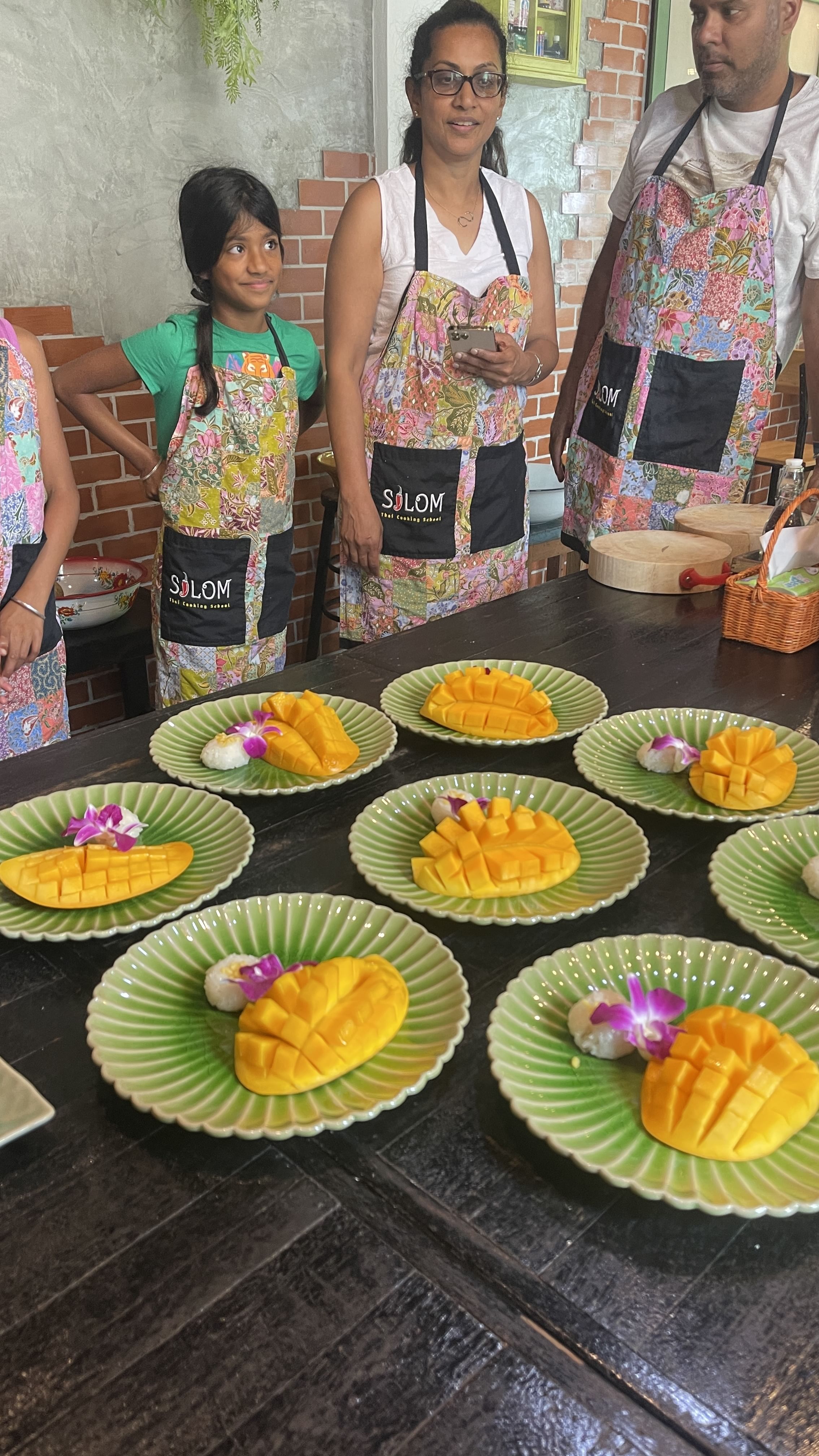 Your day starts off with a trip to the local market (morning tour only) where you'll be instructed on how to choose the ingredients correctly as well as get the items you need for the days cooking ahead. You will cook four delicious Thai courses, each one from scratch with a professional chef. Dishes include tom yum (hot and sour soup), pad thai (stir-fried rice noodles), sweet and sour stir-fry with rice and khao neow ma muang (mango sticky rice) .